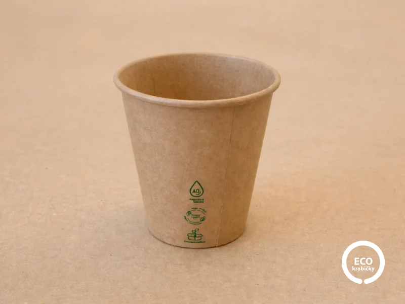 Ekologický papírový kelímek na horké nápoje v hnědém provedení je ideální volbou pro kavárny, catering i rozvoz.